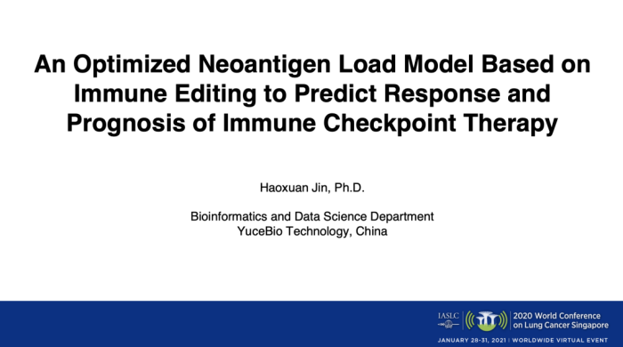 2021年1月28日,裕策生物的“基于免疫编辑的优化新抗原负荷模型用于预测免疫检查点治疗响应和预后”的研究项目以featured poster形式发表在WCLC2020会议上。下面,小编就为大家详细解读这项研究结果。